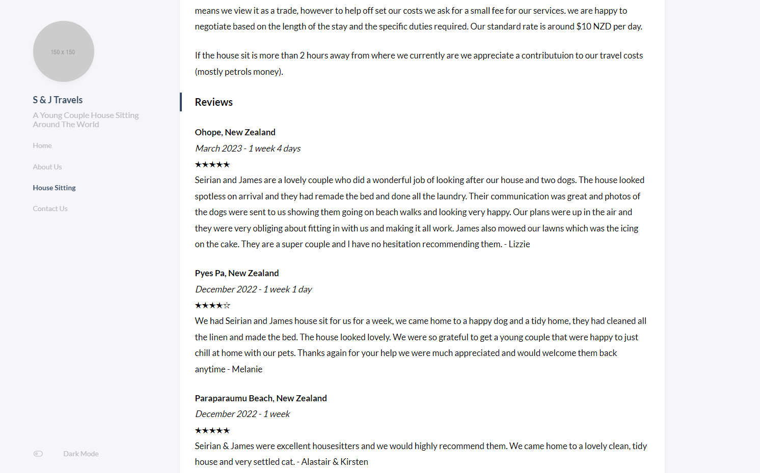 You can find the website at: sjtravels.netlify.app. This could quite possibly change in the future as we decide to splash out and buy a domain name.